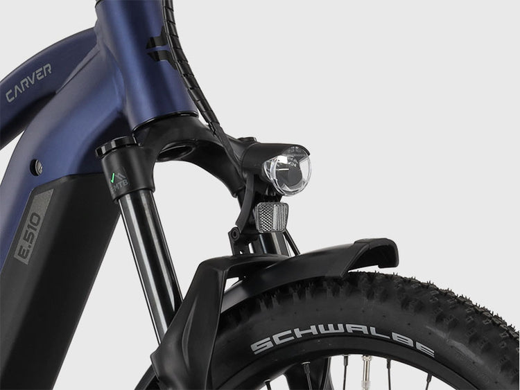 Die SUV-E FS Series von Carver ist vollständig nach StVZO ausgestattet, damit du jederzeit sicher unterwegs bist. Mit integrierten Front- und Rücklichtern, Schutzblechen und einem zuverlässigen Seitenständer bist du bestens für jede Fahrt gerüstet. Ob bei Tag oder Nacht, Regen oder Sonnenschein – diese E-Bikes bieten dir maximale Sicherheit und Sichtbarkeit im Straßenverkehr. Fahre sorgenfrei und genieße jede Tour!